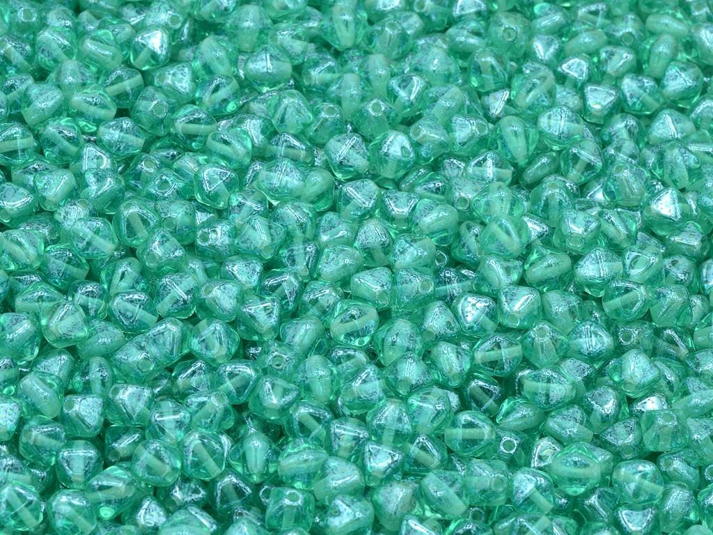 Czech glass beads “bicone”, size 6 mm, package contents 60 pcs or is described below, color green aqua with 14400 finish (shimmer).