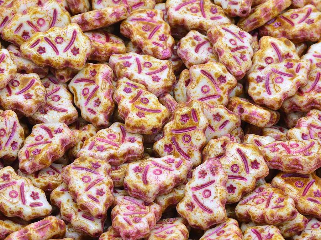 Pressed beads in the shape of a Christmas tree, size 17x11 mm, package contents 10 pcs or is described below, color chalk white with 86800 and 43807 finish.