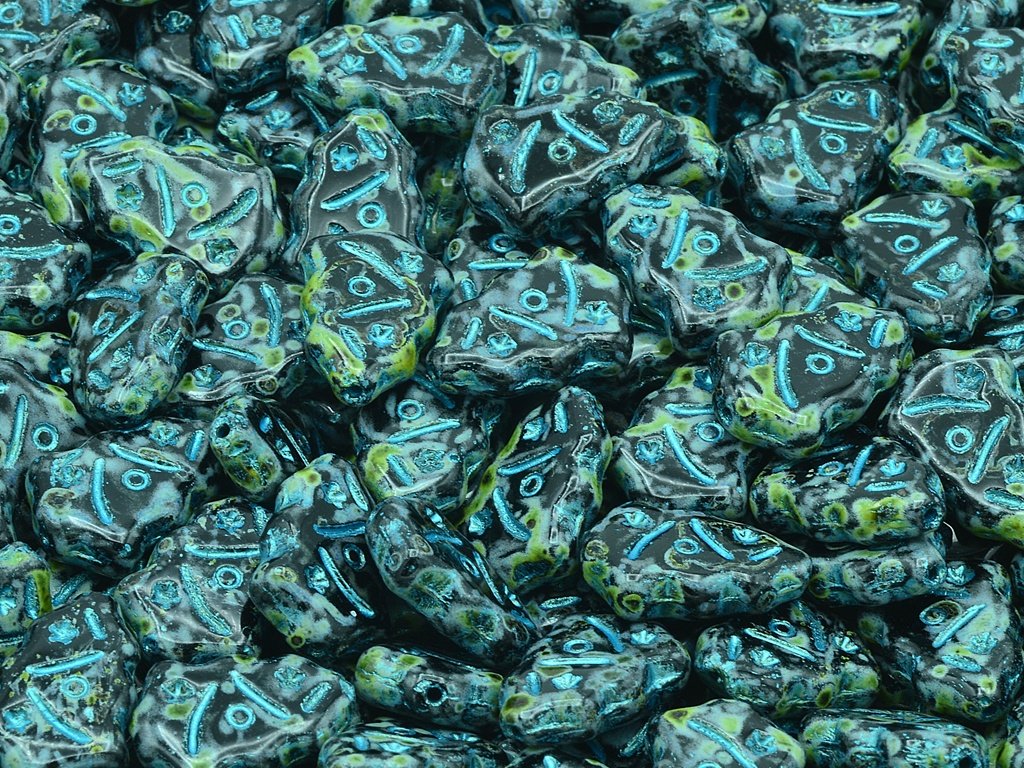 Pressed beads in the shape of a Christmas tree, size 17x11 mm, package contents 10 pcs or is described below, color jet with 86800 and 43811 finish.