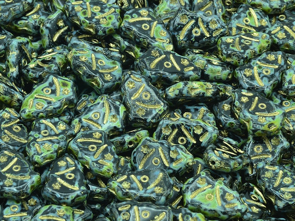 Pressed beads in the shape of a Christmas tree, size 17x11 mm, package contents 10 pcs or is described below, color jet with 86800 and 54302 finish.