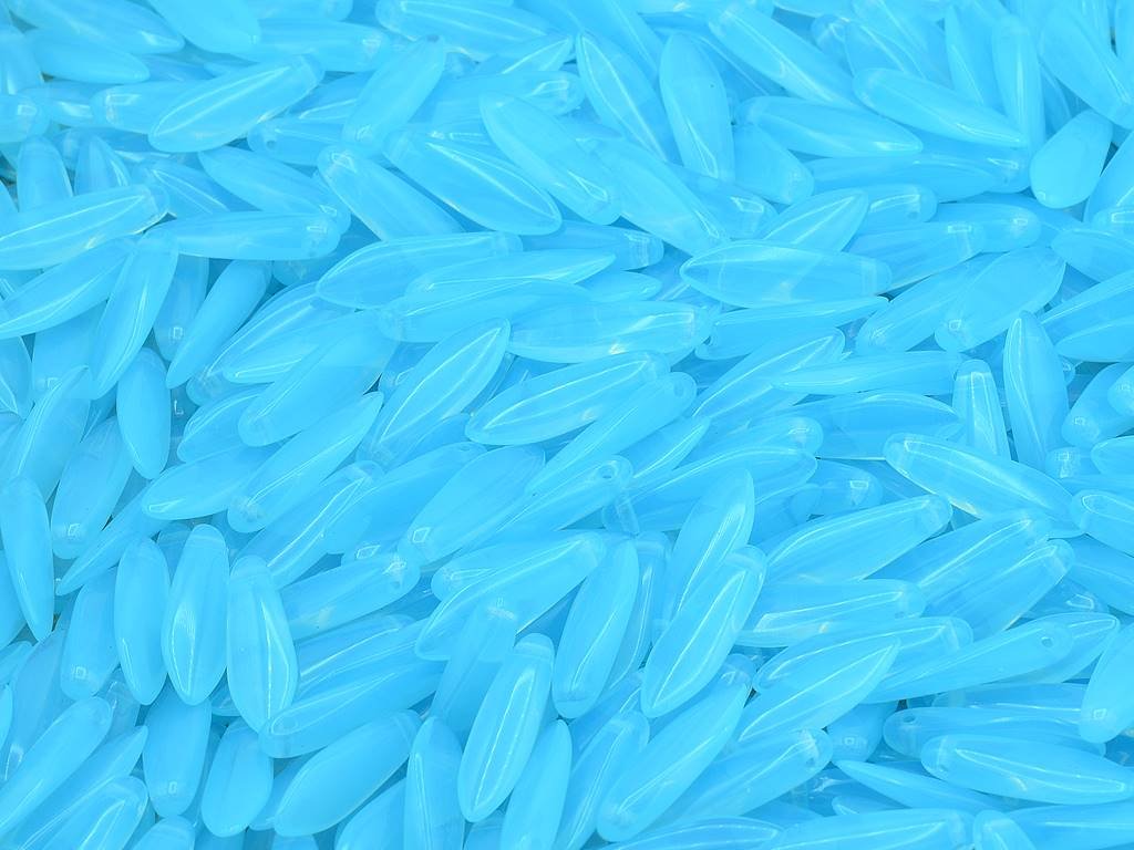 Czech glass beads “daggers”, size 5x16 mm, package contents 15 pcs or is described below, color opal aquamarine.