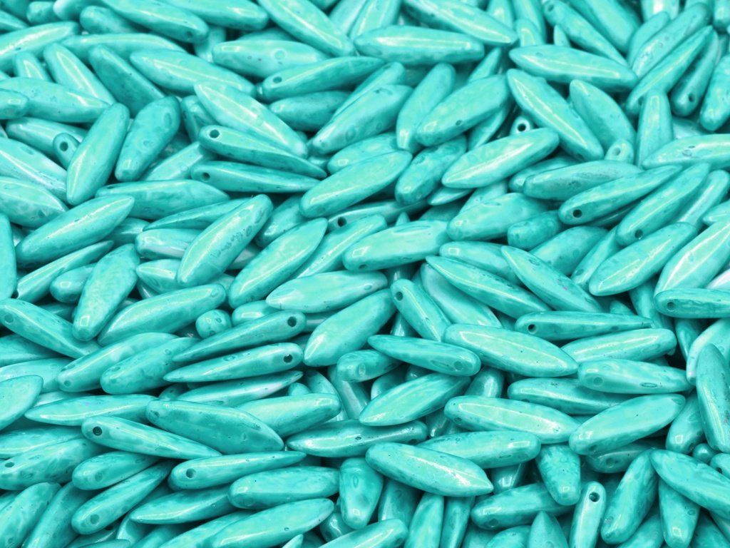 Czech glass beads “daggers”, size 5x16 mm, package contents 15 pcs or is described below, color chalk white with 69005 finish.