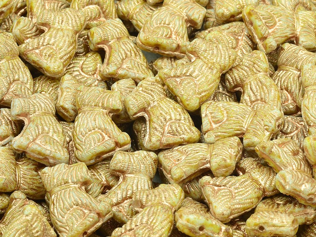 Czech glass beads in the shape of sitting dog, size 19x17 mm, package contents 2pcs or is described below, color chalk white with 86800 and 54307 finish.