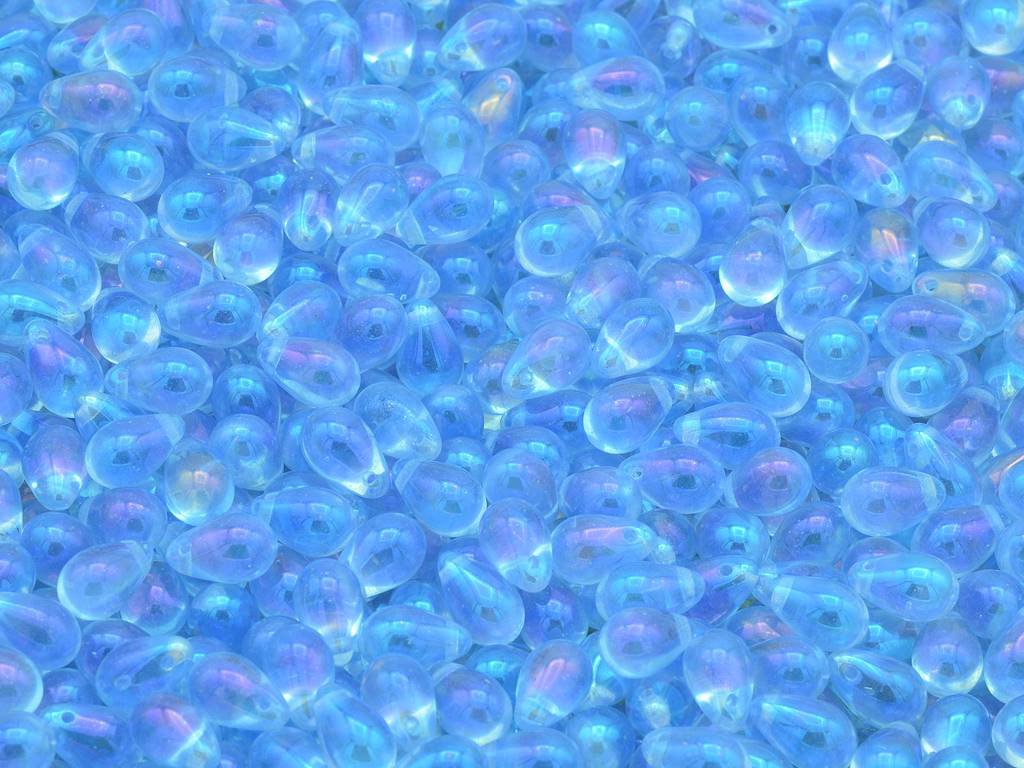 Drop shaped beads, size 6x9 mm, package contents 30 pcs or is described below, color lt. Sapphire with 21405 finish.