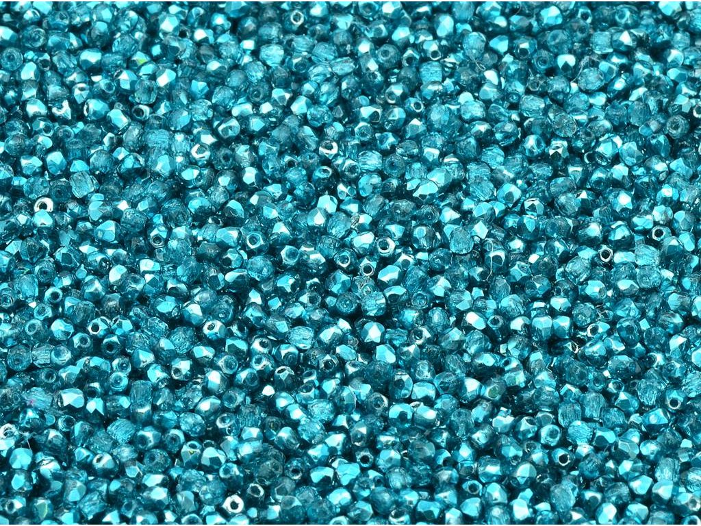 Czech fire polished beads, size 2 mm, package contents 120 pcs or is described below, color Marine Metallic Ice, hole diameter 0,6 mm
