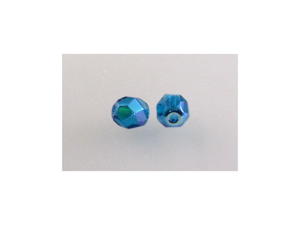 Czech fire polished beads, size 6 mm, package contents 30 pcs or is described below, color dk. aqua with AB finishDiscussion