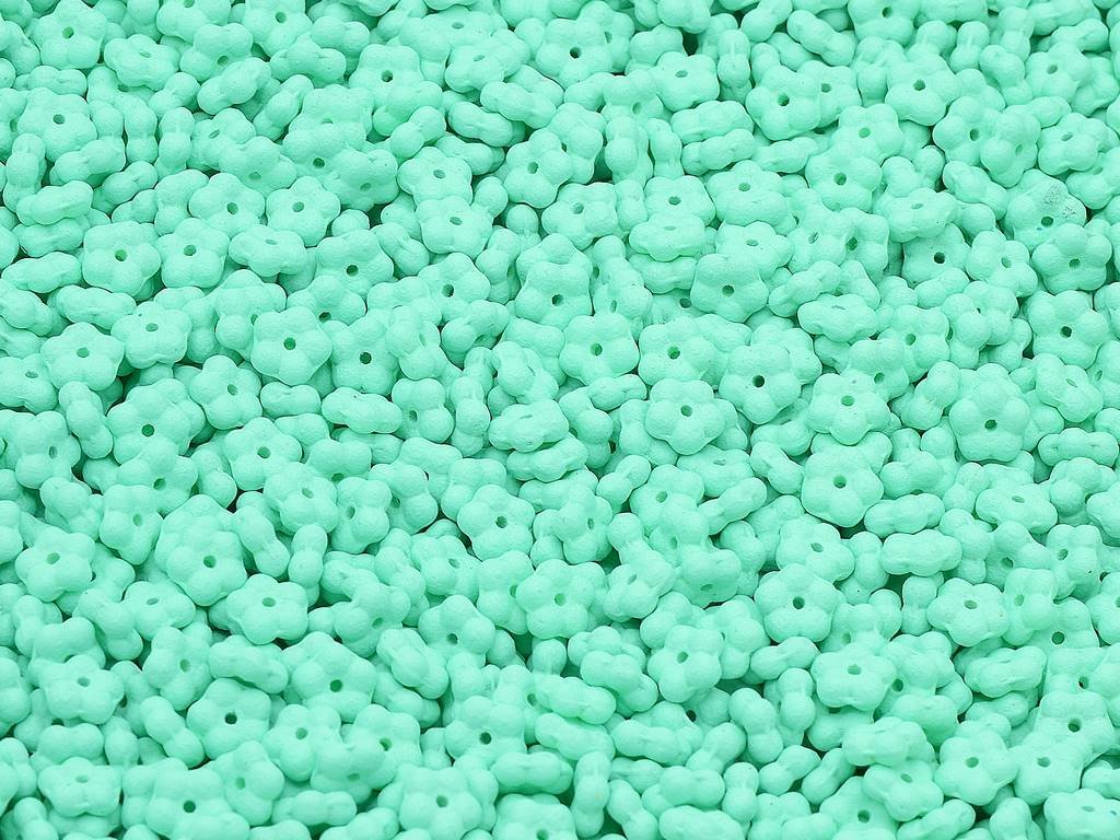 Czech glass beads in the shape of forget-me-nots, size 5 mm, package contents 60 pcs or is described below, color green.