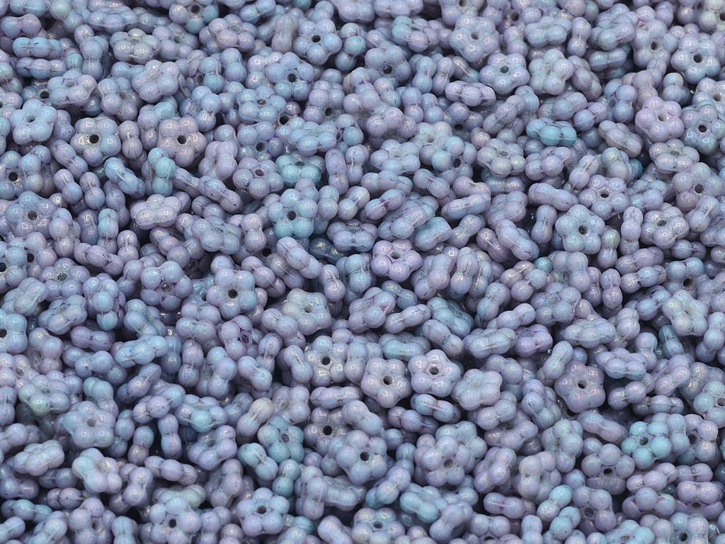 Czech glass beads in the shape of forget-me-nots, size 5 mm, package contents 60 pcs or is described below, color chalk white with 15726 finish.