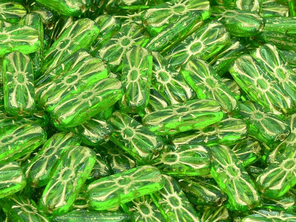 Czech pressed flower rectangle beads, size 20x8 mm, package contents 10 pcs or is described below, color yellow peridot with 54202 finish.