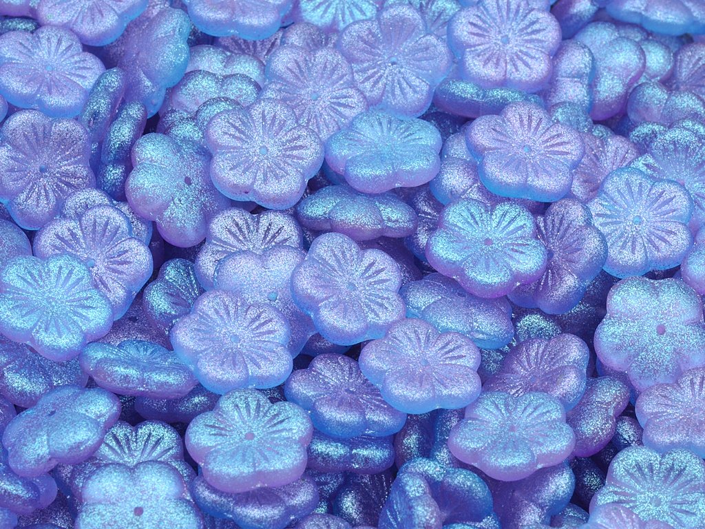 Czech glass beads in the shape of flower, size 14 mm, color crystal with 542003 finish, hole in the middle, package contents 10 pcs or is described below
