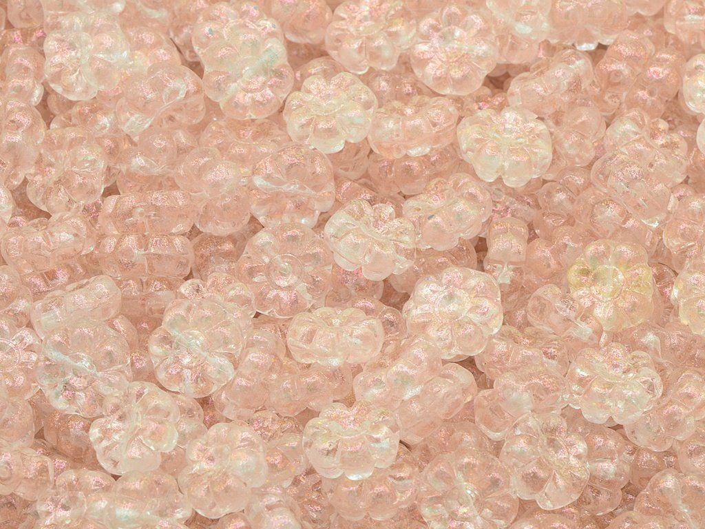 Czech pressed glass beads in the shape of flower, size 10 mm, package contents 15 pcs or is described below, color rosaline with 12502 finish.