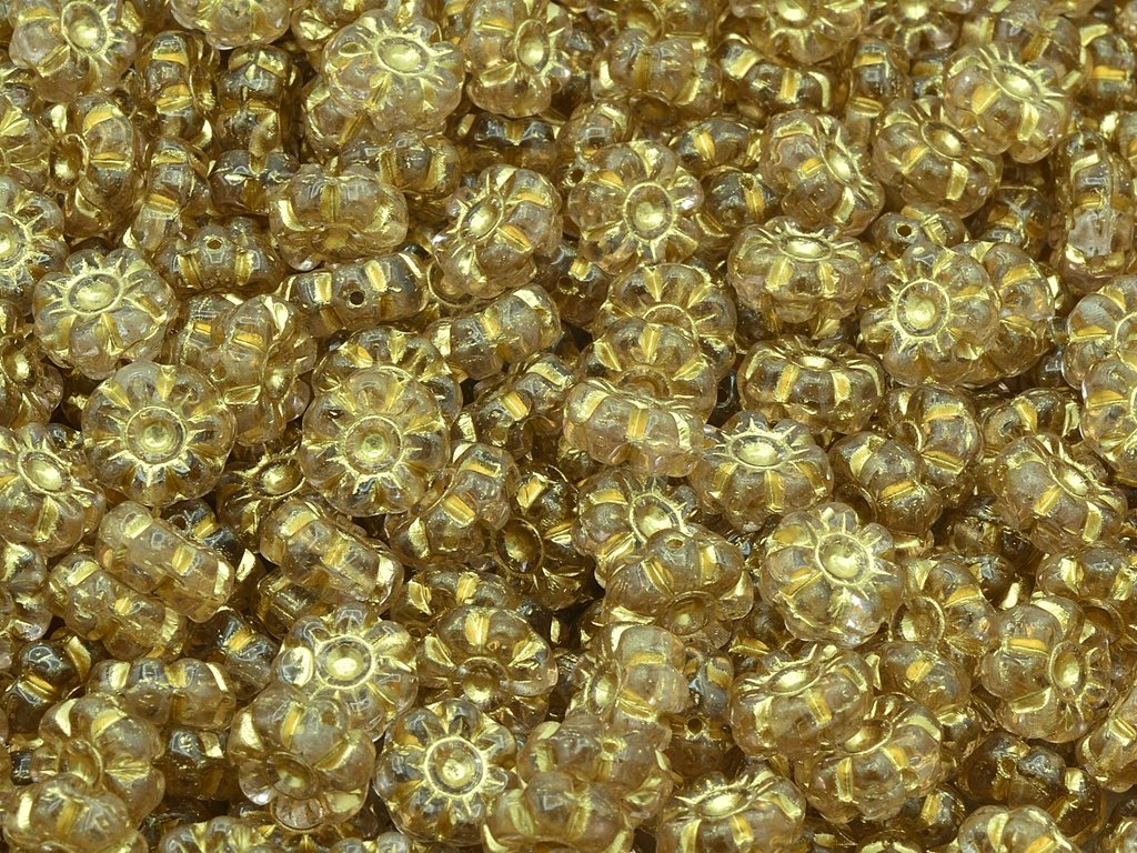 Czech pressed glass beads in the shape of flower, size 10 mm, package contents 15 pcs or is described below, color rosaline with 54202 finish.