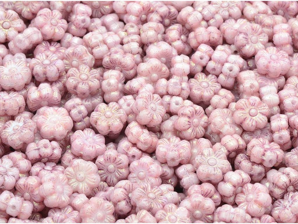 Czech glass beads in the shape of flower, size 8 mm, package contents 30 pcs or is described below, color chalk white with 14494 finish.