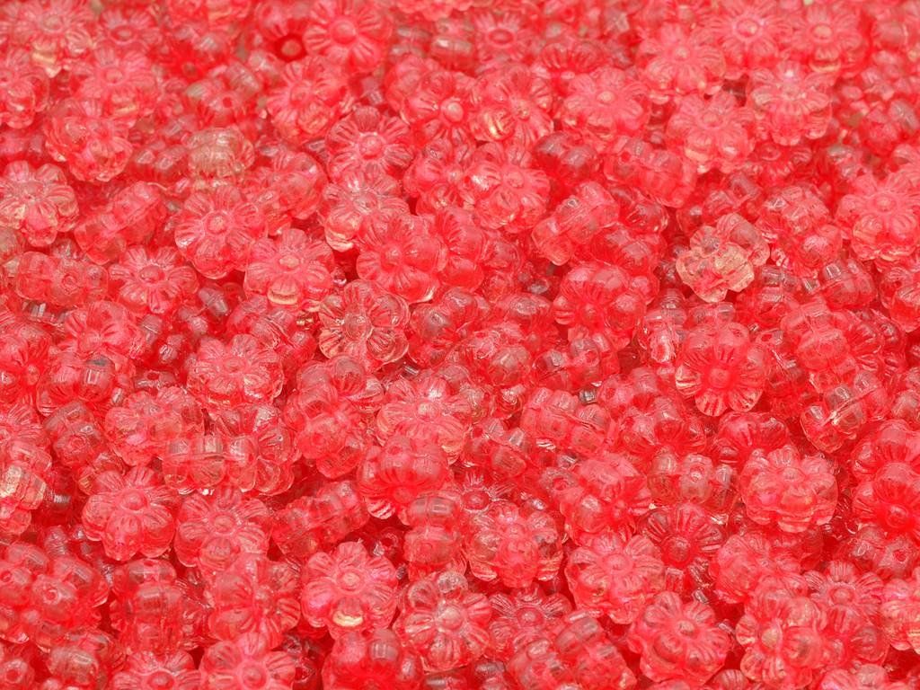 Czech glass beads in the shape of flower, size 8 mm, package contents 30 pcs or is described below, color rosaline with 54308 finish.