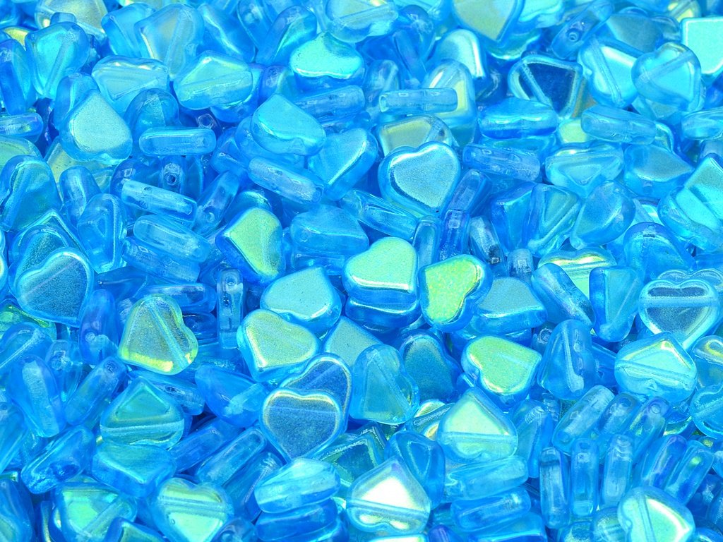 Czech pressed glass beads in the shape of hearts, size 9 mm, package contents 15 pcs or is described below, color crystal with 48112 finish.