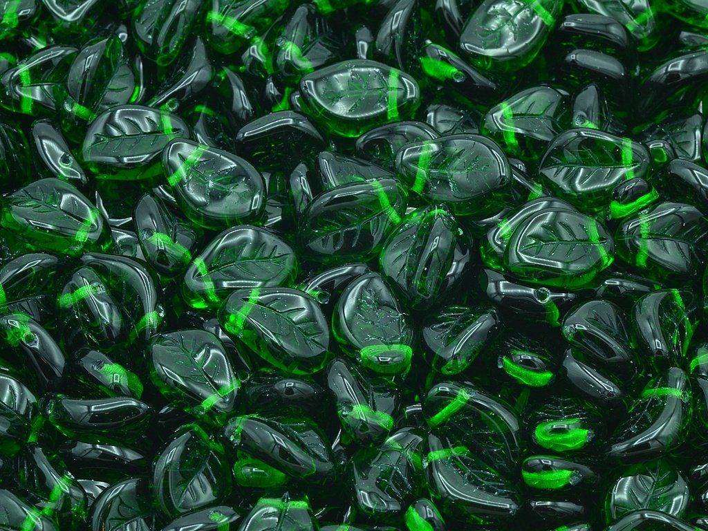 Czech pressed glass beads in the shape of leaf, size 9x14 mm, package contents 10 pcs or is described below, color chrysolite.