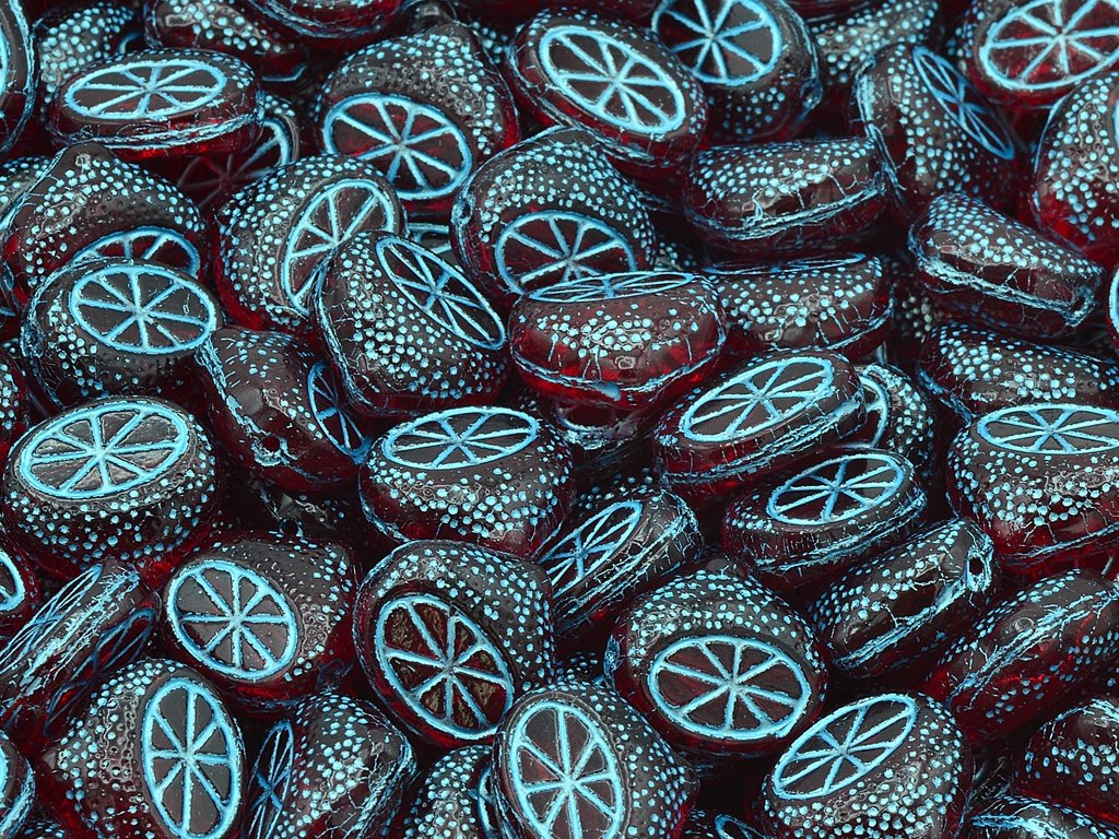 Pressed glass beads lemon shaped, size 15 mm, package contents 5 pcs or is described below, color ruby with 54208 finish.
