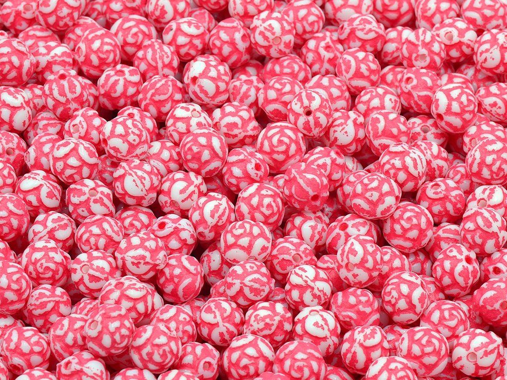 Czech pressed rose beads, size 7 mm, package contents 30 pcs or is described below, color chalk white with 54308 finish.