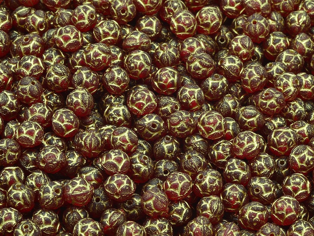 Czech pressed rose beads, size 7 mm, package contents 30 pcs or is described below, color ruby matted with 54202 finish.
