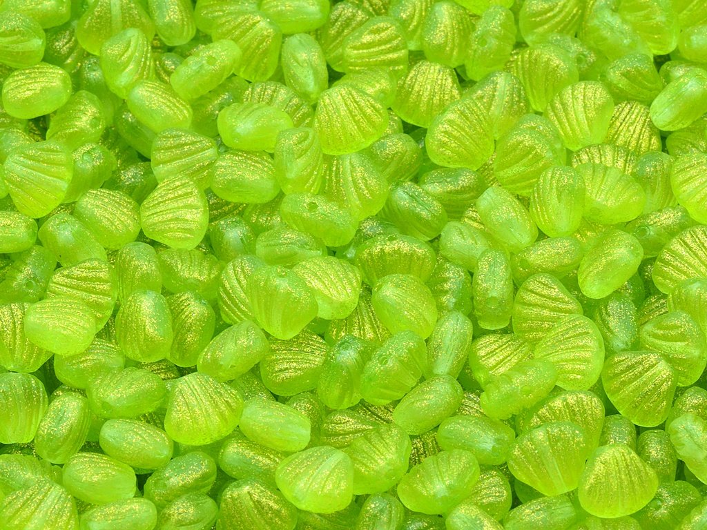 Glass beads in the shape of shell, size 8x7 mm, package contents 30 pcs or is described below, color crystal with 542008 finish.