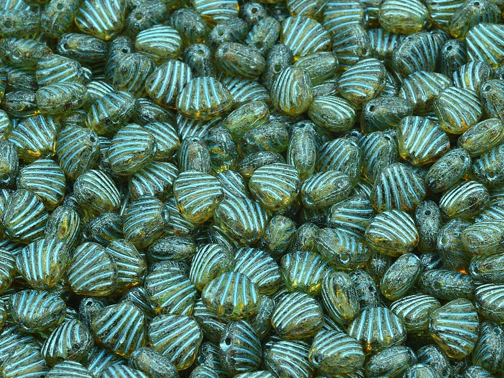 Glass beads in the shape of shell, size 8x7 mm, package contents 30 pcs or is described below, color crystal with 86800 and 54308 finish.