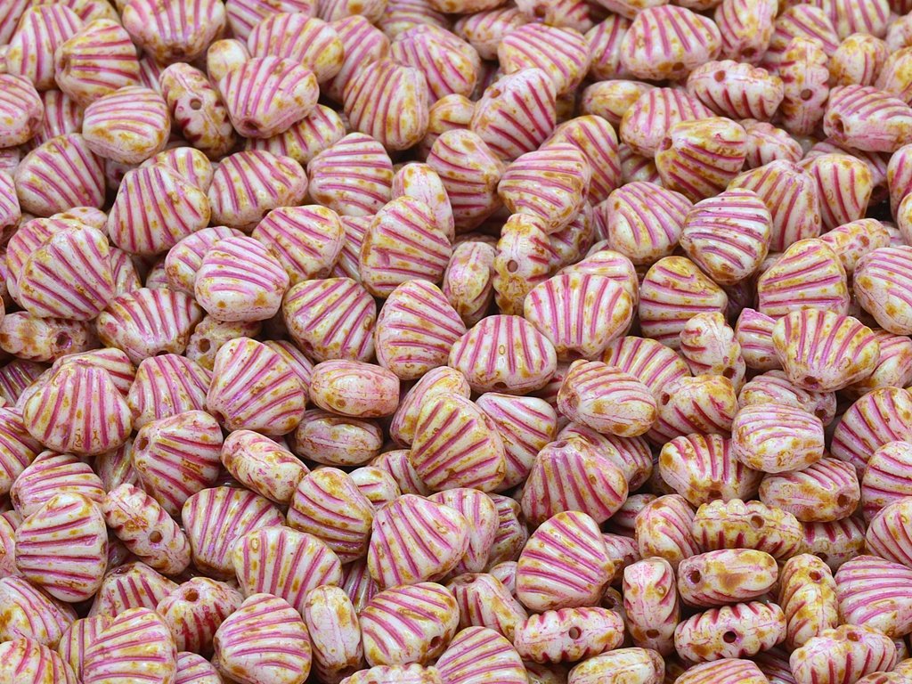 Glass beads in the shape of shell, size 8x7 mm, package contents 30 pcs or is described below, color crystal with 86800 and 43807 finish.