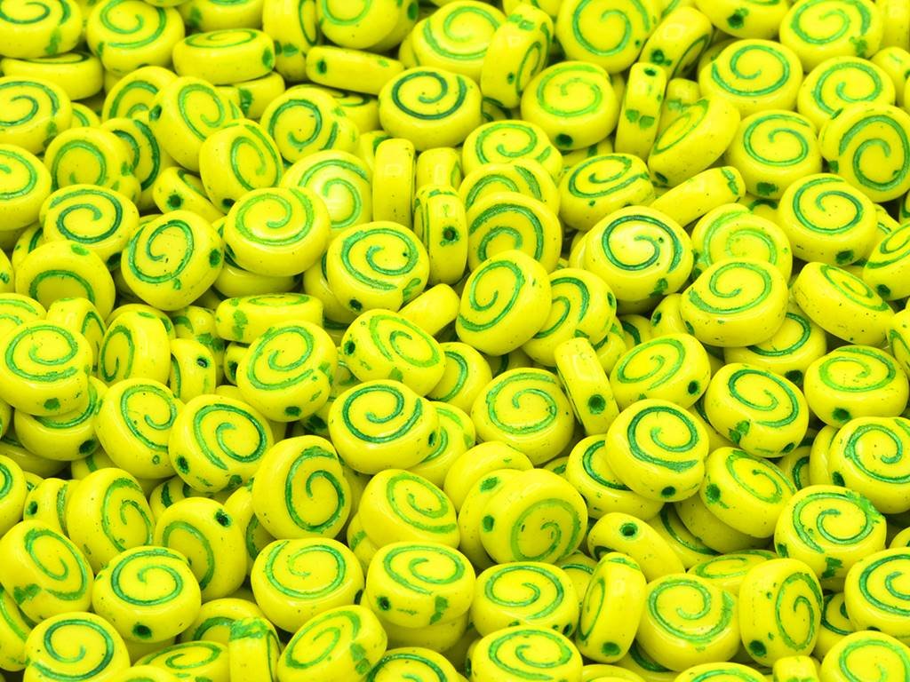Czech glass spiral beads, size 9x8 mm, package contents 15 pcs or is described below, color limon with 54550 finish .