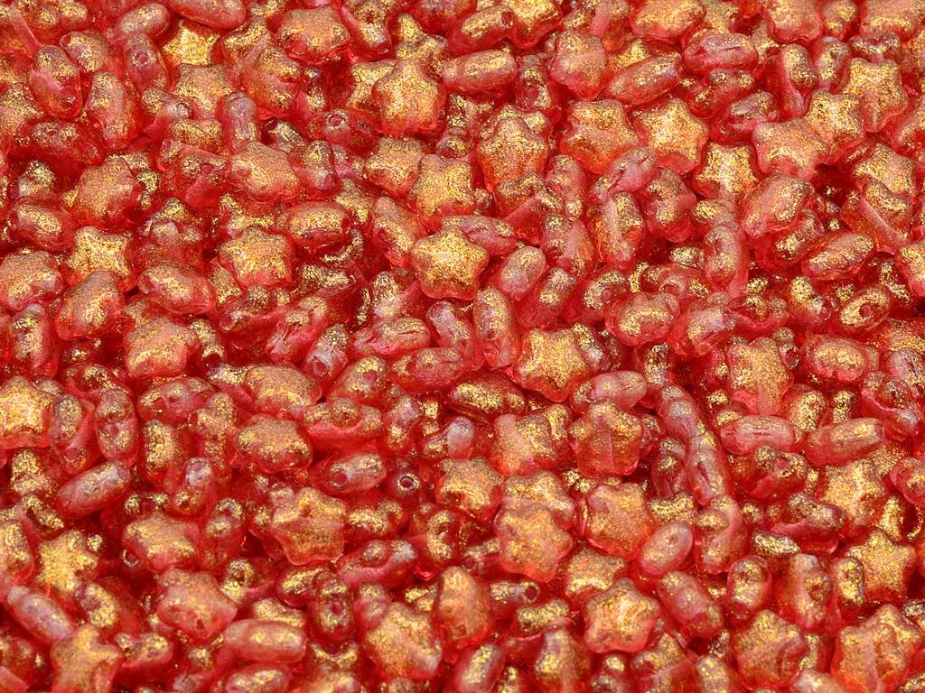 Glass beads star shape, size 6 mm, package contents 30 pcs or is described below, color Frozen Matte Dark Red.